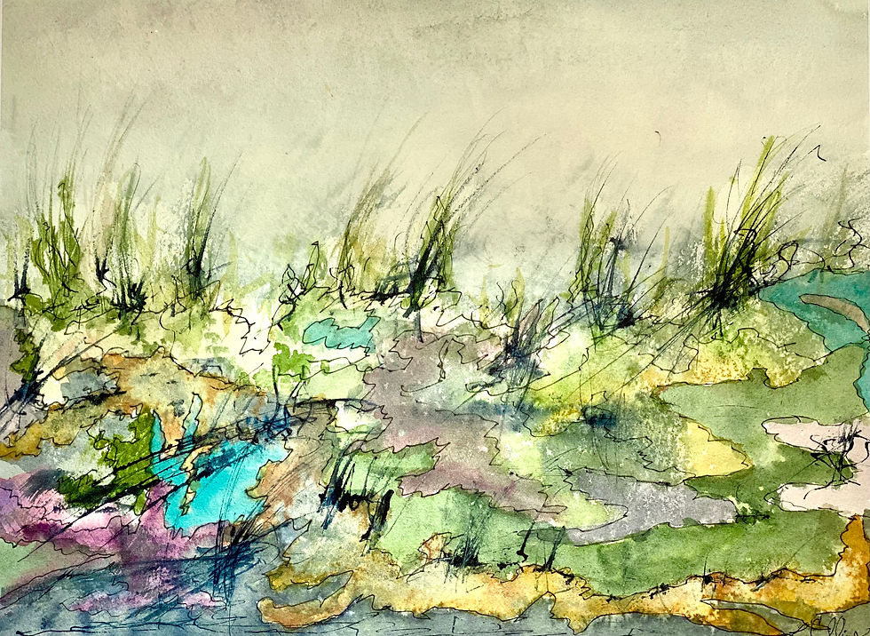 Leslie was introduced to watercolor in 2018 and knew immediately that it was a fit. After moving to the Island, she was fortunate to meet and paint weekly with a group of local artists.