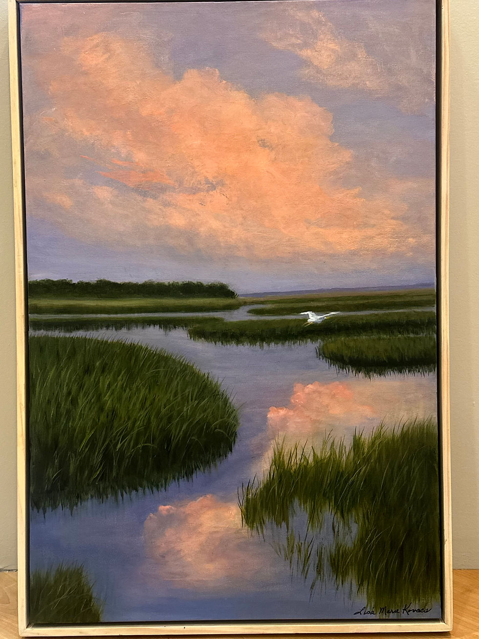 Lisa and her husband find themselves at the beach at various times of the day, walking their two dogs, enjoying the peace and tranquility of sunrise or watching the colors sunset casts on water in the evening. “It’s always inspirational for a beautiful painting!”